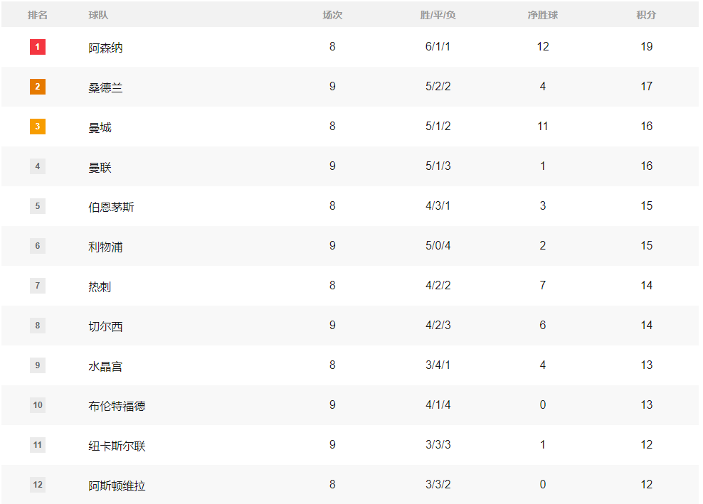 积分榜情况如下: